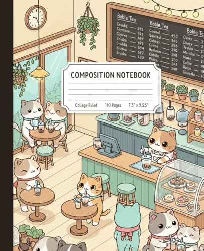 Kawaii Cat Boba Tea Shop Composition Notebook: A Cute Anime Cafe Journal for Girls and Teens | Detailed Bubble Tea Store Illustration for School, Writing, and Notes