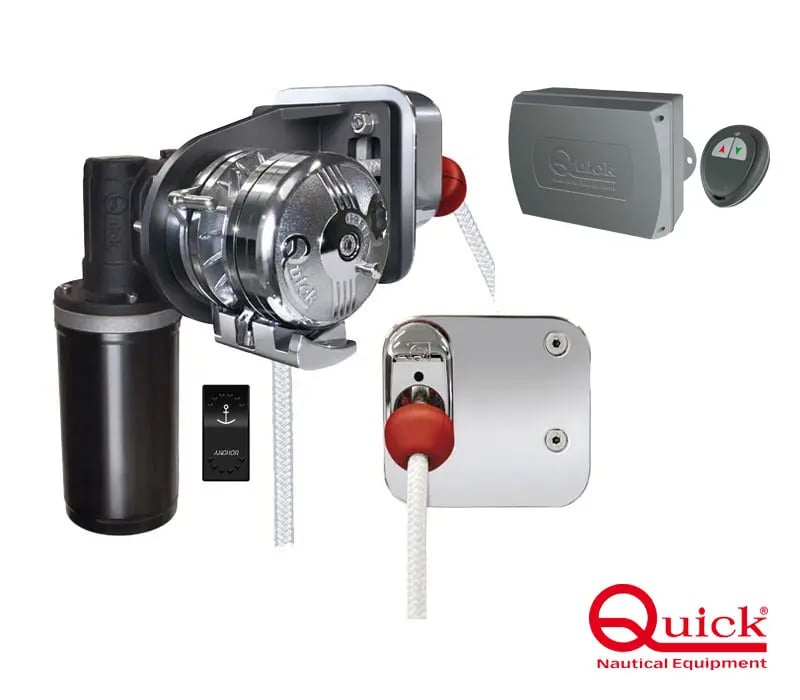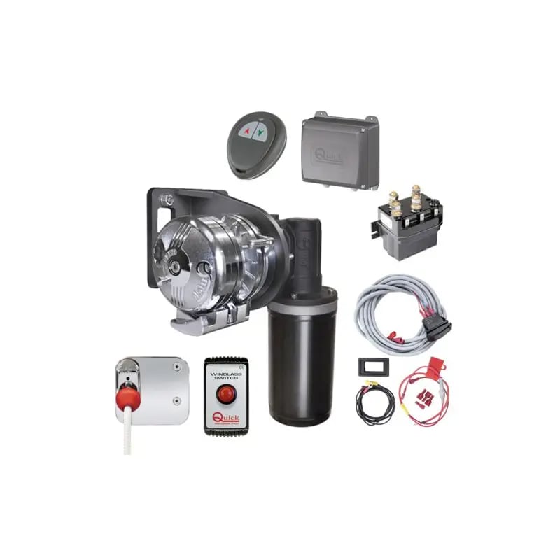 Elektriskt ankarspel (paket) Quick Balder Y Kit 1200 W, Styrbord, 12 V, för Ø12 - 16 mm helblyad lina + automatsäkring + manöverpanel + kablage