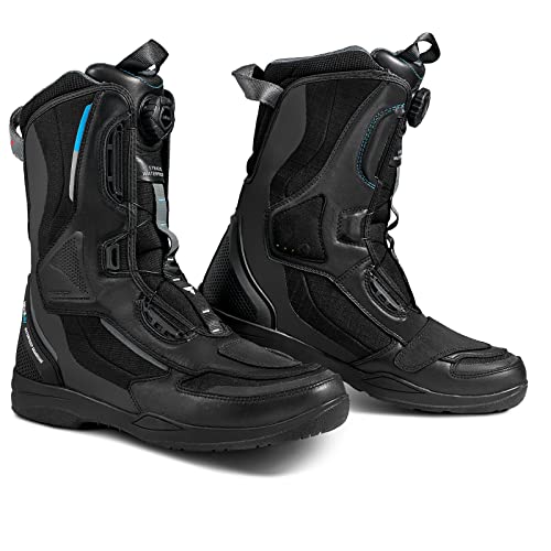 SHIMA STRATO WP, vattentäta motorcykelstövlar för män | ventilerade, förstärkta lätta långa cykelstövlar med ATOP snabbstängningssystem, ankelskydd, halkfri sula (svart, 7,5)