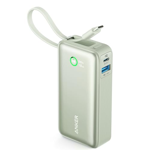Anker Nano Power Bank (30W, inbyggd USB‑C‑kabel), mobilbatteri 10000mAh, 30W uteffekt, hög kapacitet, LED‑display, med PD/PowerIQ, kompatibel med iPhone 17, 16, 15, 14, Android, MacBook och andra enhe