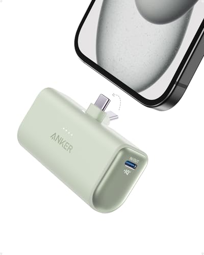 Anker Nano Powerbank, 5000 mAh Powerbank 22,5 W, integrerad vikbar USB-C-kontakt, kompatibel med iPhone 16, Samsung S22/23-serien, Note20/10-serien, Huawei, iPad Pro/Air, AirPods och mer (vit)
