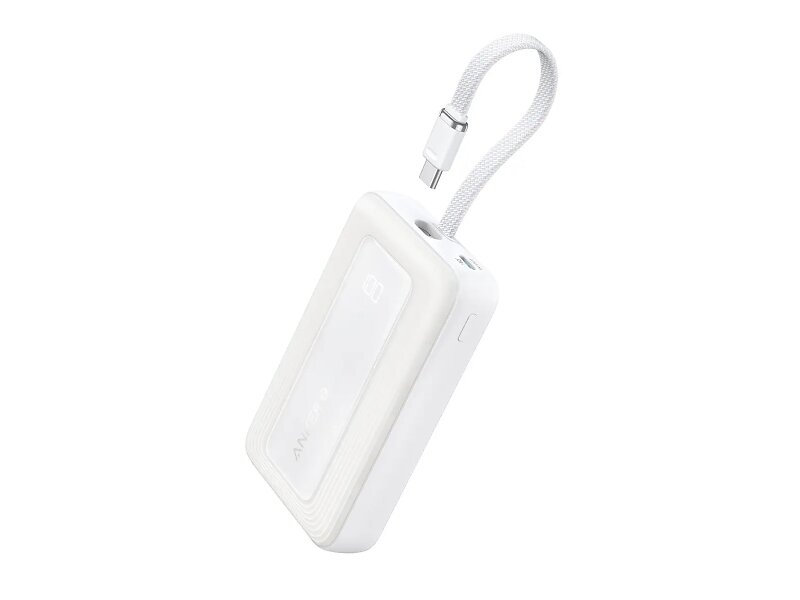 Anker Zolo Power Bank, 10 000 mAh 30 W Höghastighets Portabel Laddare med Inbyggd USB-C-kabel, Snabbladdande Batteripack för iPhone 16-serien, Galaxy, iPad och mer (vit, 10000mah)