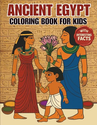Egypt Coloring Book for Kids with Interesting Facts: Simple and Bold Illustrations of Pyramids, Pharaohs, Gods, Mummies, Animals, etc