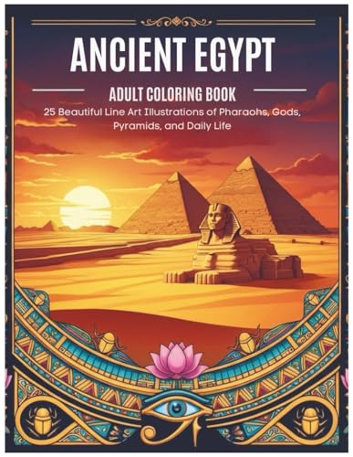 Ancient Egypt Adult Coloring Book: 25 Beautiful Line Art Illustrations of Pharaohs, Gods, Pyramids, and Daily Life
