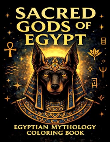 Sacred Gods of Egypt: Egyptian Mythology Coloring Book for Teens and Adults: 50 Unique Illustrations of Animal-Headed Gods, Goddesses, and Sacred Symbols for Relaxation, Stress Relief, and Creativity