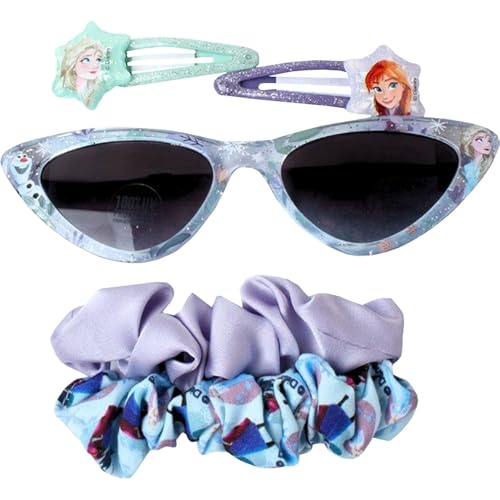 Frozen Beauty Set med solglasögon, hårsnoddar och hårspännen – Disney ELSA och Anna barntillbehör för flickor med UV-skydd och kreativt spel