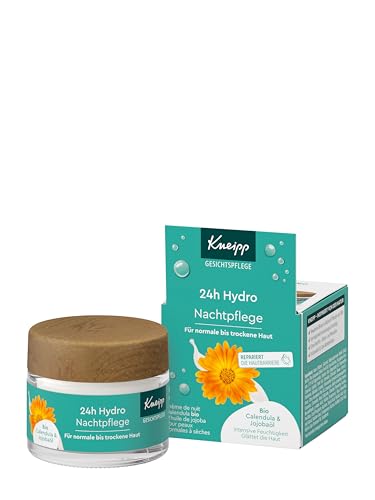 Kneipp 24h Hydro nattvård – ansiktskräm med ekologisk kalendula & E-vitamin – för normal till torr hud – vegansk – 50 ml