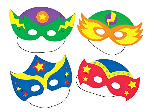 Baker Ross AF532 Star Hero skum ansiktsmask kit (paket med 4) för barn att dekorera och bära