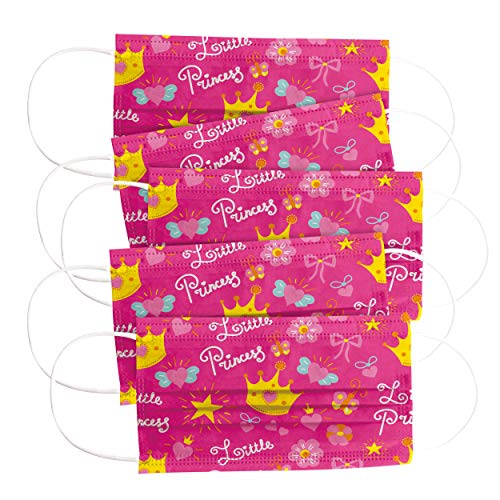 CRAZE Uppsättning med 5 munmasker med tryck för barn, engångsmask, ansiktsmask i 3 lager, mask med motiv, ansikte och näsa, barnmask, liten prinsessa, 31742, 5 barn, prinsessa 31742