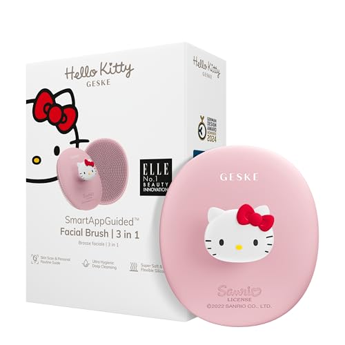GESKE x Hello Kitty | SmartAppGuided™ Facial Brush | 3 i 1 | ansiktsrengöringsborste | rengöringsborste | ansiktsborste av silikon | hudrengöring | hudvård | skonsam rengöring | ansiktsrengöring