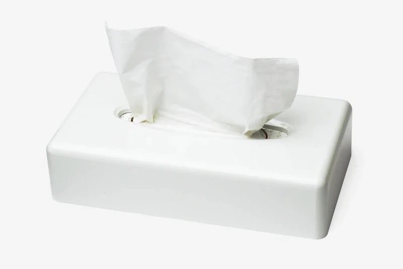 KINGFOM Näsdukslåda i PU-läder med mockaliknande yta, rektangulär box, näsdukshållare, ansiktsservett, dispenser för hem, kontor, bil, dekoration med magnetisk botten (mjuk vit)