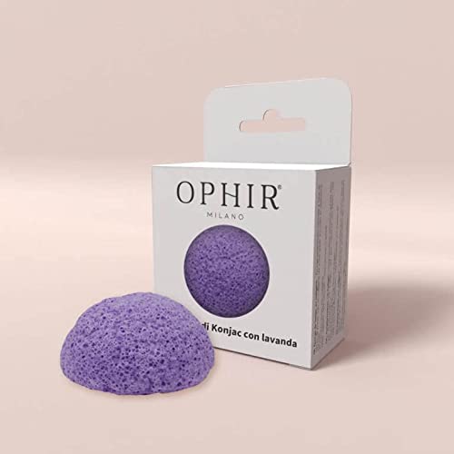 OPHIR Konjac svamp med lavendel - Naturlig ansiktssvamp - Ansiktssvamp för rengöring och exfoliering med lugnande, lugnande och avkopplande egenskaper