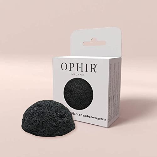 OPHIR Konjac Svamp med kol - Naturlig ansiktssvamp - Svamp för rengöring och exfoliering av ansiktet perfekt för fet och akneisk hud