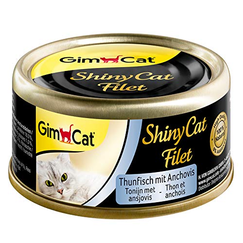 GimCat ShinyCat Filet tonfisk med ansjovis - Kattfoder med saftiga filéer utan tillsatt socker, för vuxna katter - 48 burkar (48 x 70 g)