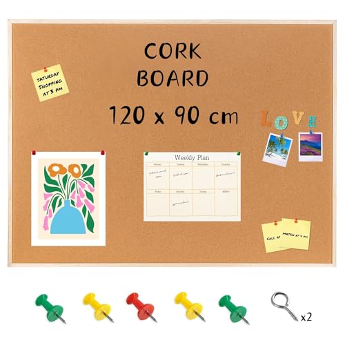 Creative Home 1200 x 900 mm (+/- 1 cm) Kork Anslagstavla Tjock Tallram Anslagstavla | Tillverkad i EU | Perfekt för Kontor, Skola, Sovrum och Hem
