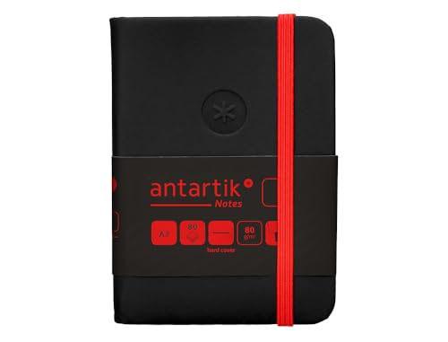 Antartik GUMILLE-anteckningsblock hårda omslag A7 blad slät svart och röd 80 blad 80 GR FSC