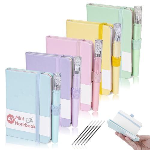 Mulaibdin 5 st liten anteckningsbok, minianteckningsbok med penna, liten A7-anteckningsbok med band, litet anteckningsblock, anteckningsböcker, inbunden anteckningsbok väskor för kontor, skola, memo,
