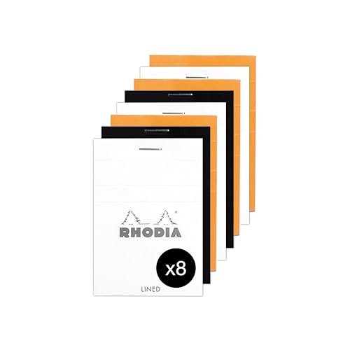 Rhodia 11600AMZC - ett paket med 8 häftade anteckningsblock nr 11 - A7 - linjerad - 80 avtagbara ark -80 g/m² - 3 olika färger (orange, svart och vit)