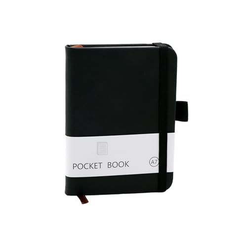 Nayubo A7 fickanteckningsbok för att skriva 200 sidor bärbar liten journal anteckningsbok med elastisk rem och pennhållare mini anteckningsblock för arbete resor daglig dagbok (svart)