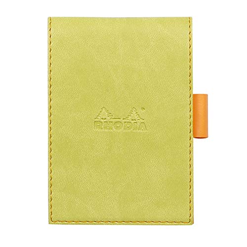 RHODIA 118206C – Urklipp fodral + häftat anteckningsblock nr. 11 anis – A7 – fodrad – 80 avtagbara ark – vitt Clairefontaine papper 80 g/m – pennhållare – fuskläder – Rhodiarama-samling