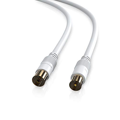 POLY POOL | PP0619XAM TV-antennkabel 1,5 m Koaxialkabel för anslutning av TV till kabelantenn vit antenn med axiell antennuttag TV