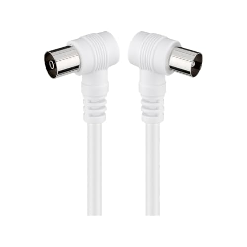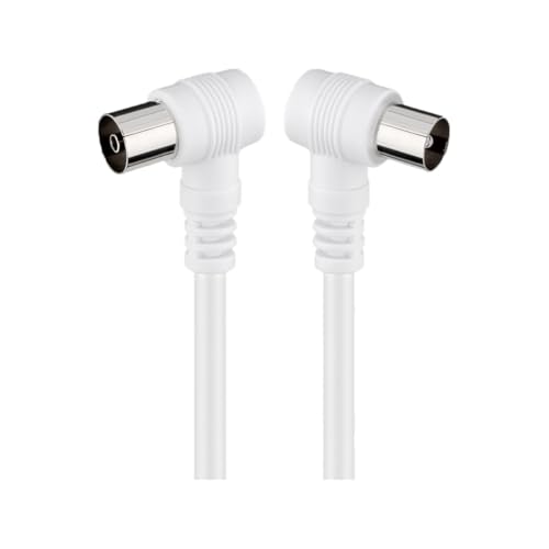 Goobay 11522 vinklad antennkabel, satellitanslutningskabel, koaxialkabel, satellitkabel, koaxkontakt 90° till koaxuttag, 2-vägs skärmad, 75 ohm, 70 dB, vit, 5 m