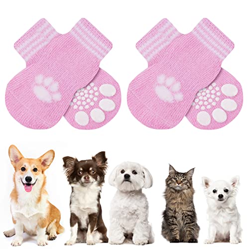 AUAUY Anti-Slip Hundstrumpor, Hundstrumpor, Pet Paw Protector, Pet Strumpor Traction Control för Inomhusbruk, Lämplig för Små Medelstora Hundar Och Katter Inomhus Utomhuspromenader Rosa-M