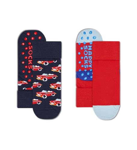 Happy Socks Kids 2-Pack Car Anti-Slip Bomull Nedvikta strumpor Barn Marinblå Röd 2-3Y