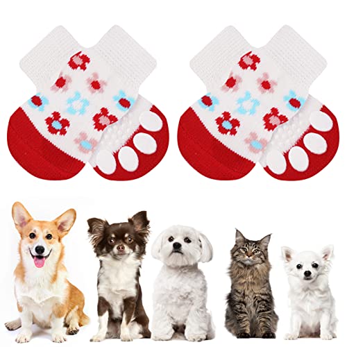 AUAUY Anti-Slip Hundstrumpor, Hundstrumpor, Pet Paw Protector, Pet Strumpor Traction Control för Inomhusbruk, Lämplig för Små Medelstora Hundar Och Katter Inomhus Utomhuspromenader
