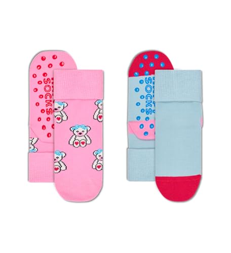Happy Socks Kids 2-Pack Teddy Anti-Slip Bomull Nedvikta strumpor Barn Rosa Ljusblå 2-3Y