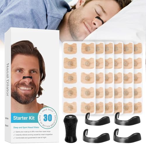 Welsberg 30 st Nässnarksplåster, Anti-Snark Hjälp, Snarkstoppande Plåster, Lindring av Nästäppa, Bättre Andning under Sömn och Sport, Nässplåster för Män och Kvinnor, Storlek M, 55x16 mm