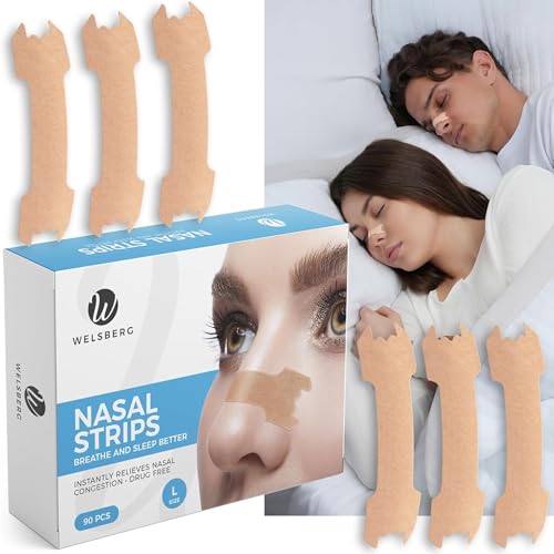 Welsberg 90 st Nässnarksplåster, Anti-Snark Hjälp, Snarkstoppande Plåster, Lindring av Nästäppa, Bättre Andning under Sömn och Sport, Nässplåster för Män och Kvinnor, Storlek M, 55x16 mm