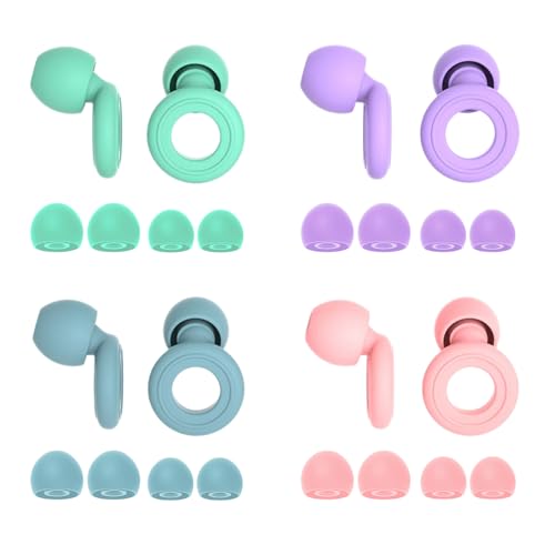 Saiurv 4 par återanvändbara silikonöronproppar för att sova, 28 dB anti-snarkning bullerstopp öronproppar S/M/L hörselskydd för arbete, konserter, resor och studier (flerfärgad, en storlek)