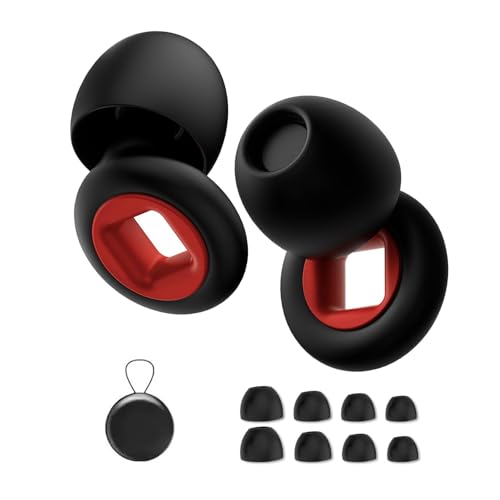 Poraceous Öronproppar för ljudsömn, 1 + 3 par motorcykelproppar, återanvändbara öronproppar, anti-snarkning, silikon för Artevive Earplugs, musiker, koncentration, motorcyklar (svart röd)
