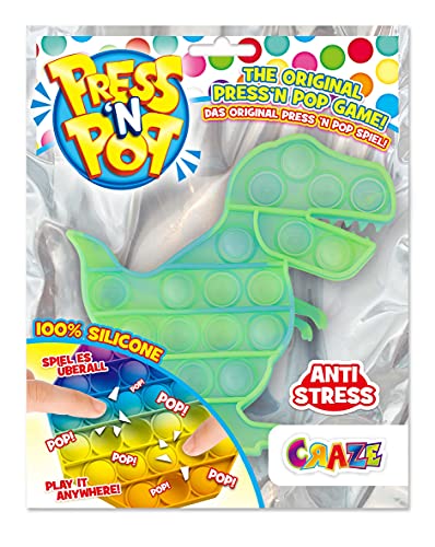 CRAZE PressNPop Press N POP unisex dino fidget toy sensorisk anti-stress leksak för barn vuxna bubbelset dinosaurie form 37317, vackra färgkombinationer