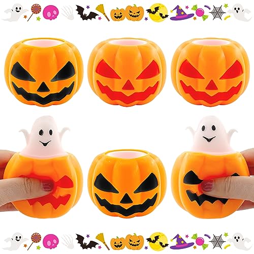 Lets Joy 6 stycken Halloween party gåva, anti-stress leksak, stresslindring leksak, pumpaleksak, barn party present