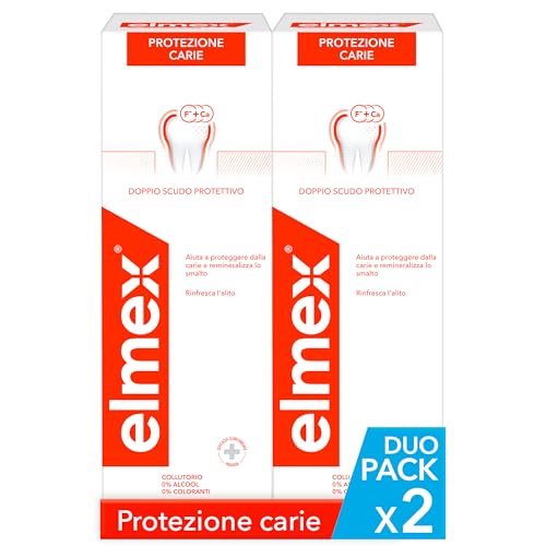 elmex munskölj kariesskydd 2 x 400 ml – antibakteriell tandrengöring utan alkohol skyddar effektivt mot karies – för daglig användning med dubbelaktiv kalciumfluorid skydd