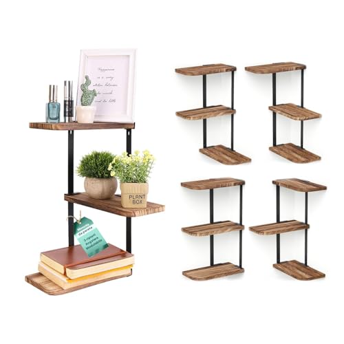 Avilia - Hörnvägghylla i antik trä med metallfäste för vintage inredning, perfekt för små föremål, lätt att montera, stabil och mångsidig för alla hörn