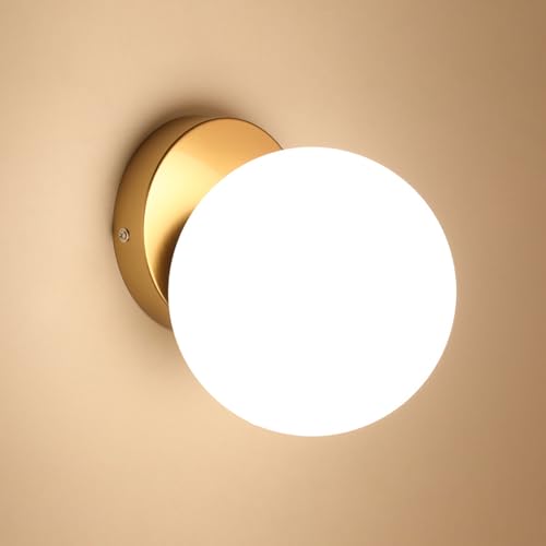 Comely Inredning Vägglampa, Modern Applique 15cm, Kreativ Vägglampa Glaskula E27 med Antik Guldbas, Vägglampa för Trappor, Sovrum och Korridorer (Lampa ingår ej)