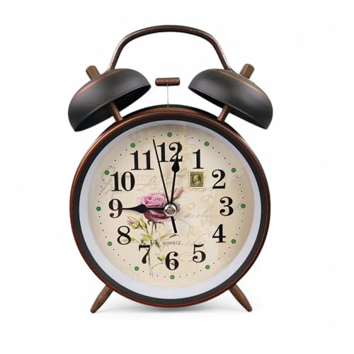 GMMH retro analog väckarklocka, utan tickande, bordsklocka sängbordsklocka dubbel klocka väckarklocka (14-85) vintage retro nostalgi av metall, antik golvklocka skrivbordsklocka bordsväckarklocka med
