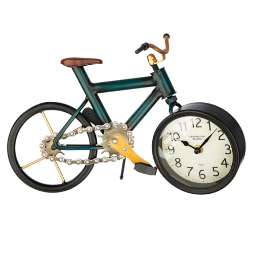 GILDE stativ/bordsklocka av metall – cykelform – antik finish – mörkblå – höjd 24 cm x bredd 34 cm – dekorativ klocka