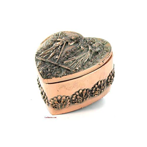 lachineuse - Hjärtlåda - 8 x 7,5 x 5 cm - antik egyptisk dekoration - egyptisk smyckeskrin, nycklar, klocka - alla hjärtans dag, kärlek - dekorationsidé för förvaring urna - metallfärg