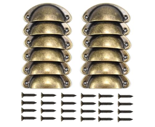 NiceLand Vintage möbelhandtag 12 st skal handtag retro vintage möbler skåp låda dörr, antik dörrknapp med skruvar, brons
