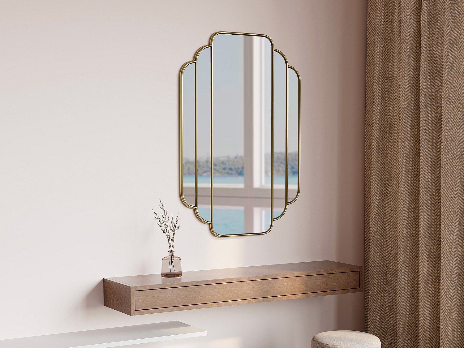 Välj speglar Ella spegel – trippelvikta sminkbordsspegel – 74 cm x 55 cm fristående sminkspegel (antikt guld)