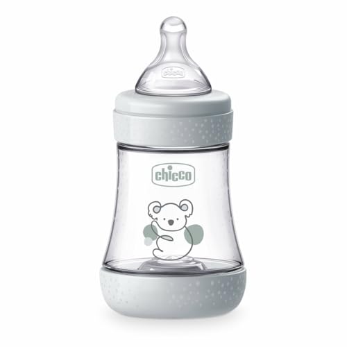 Chicco PERFEKT 5 anti-kolik nappflaska, 240 ml flaska, medelstor kapacitet för 2 månader + med mjuk silikonnapp, liknande bröstflaska, anti-kolik nappflaska för blandad amning