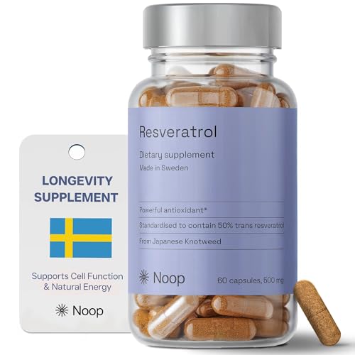 Noop Resveratrol 500 mg, 60 Premium kapslar med Trans Resveratrol från Japanese Knotweed med 60 veganska kapslar, antioxidant och anti-aging som är tillverkad i Sverige
