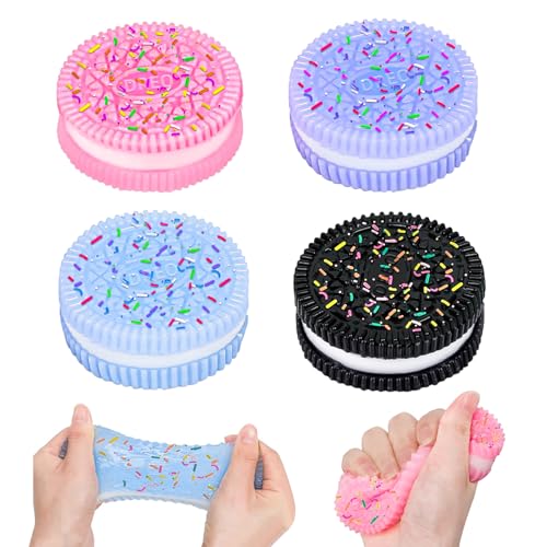 4 stycken Oreo Squishy, Squishy Oreo med sockerströssel färgglad taba-squishy kex stressreducerande leksaker, ultramjuk antistress-leksak för vuxna för att knåda och koppla av