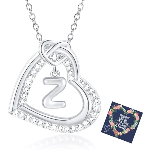 Halsband Kvinnor Silver Necklace Kvinnor Zirkonia Hjärta Hängsmycke Necklace med bokstäver A-Ö Halsband Dam Presenter för Kvinnor Flicka Flickvän 18 + 2 tum (Silver Z)