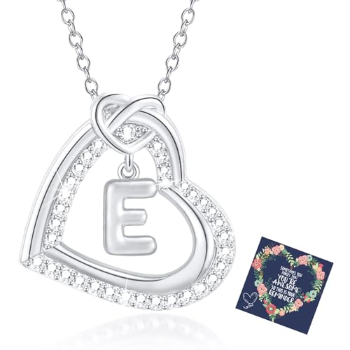 Halsband Kvinnor Silver Necklace Kvinnor Zirkonia Hjärta Hängsmycke Necklace med bokstäver A-Ö Halsband Dam Presenter för Kvinnor Flicka Flickvän 18 + 2 tum (Silver E)
