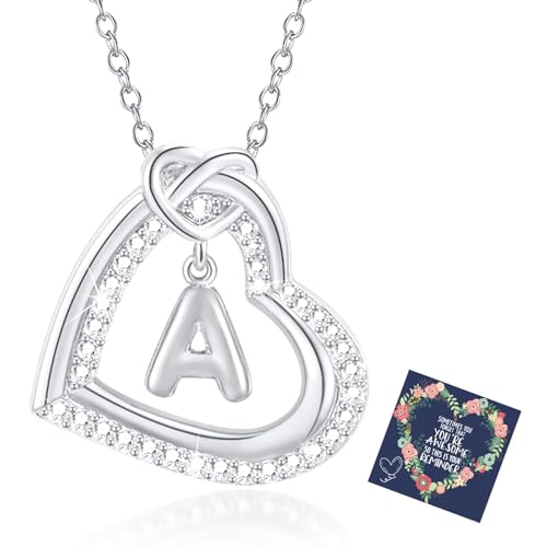Halsband Kvinnor Silver Necklace Kvinnor Zirkonia Hjärta Hängsmycke Necklace med bokstäver A-Ö Halsband Dam Presenter för Kvinnor Flicka Flickvän 18 + 2 tum (Silver A)